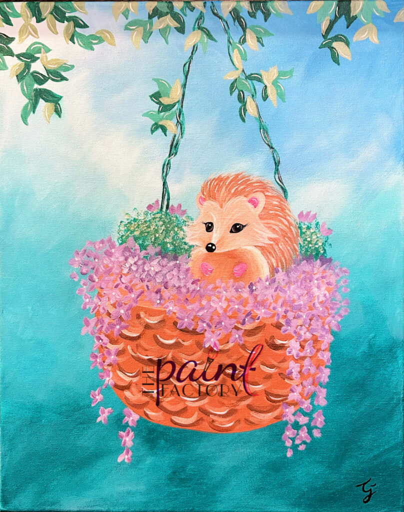 Join us Sun April 19th at 2pm for the debut of “Spring Hedgehog”…we will walk you step by step through this cutie…and feel free to change up the colors however you like. We will even have the hedgehog and basket sketched on the canvas for you!